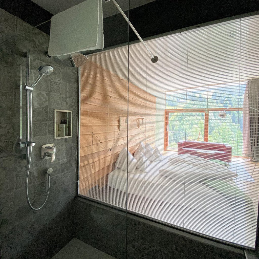 Klare Architektur, Beton, Holz, Glas und viel Licht formen Räume, die wie kleine Kunstwerke wirken. Das ganze Haus ähnelt einer Galerie – in jeder Ecke wartet ein Erlebnis, ein Detail, etwas Unerwartetes. Echte Atmosphäre statt Standard.