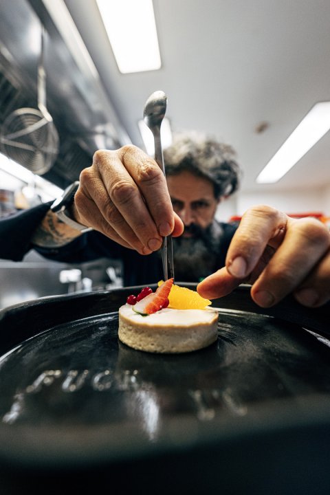 Italian Alpine Fusion mit Lust am Ausprobieren. Küchenchef Giorgio Trovato kocht mit Neugier, Gefühl und Spielfreude. Ein Ort zum Teilen, Probieren und Bleiben – für Hotelgäste genauso wie für alle, die einfach gut essen wollen.